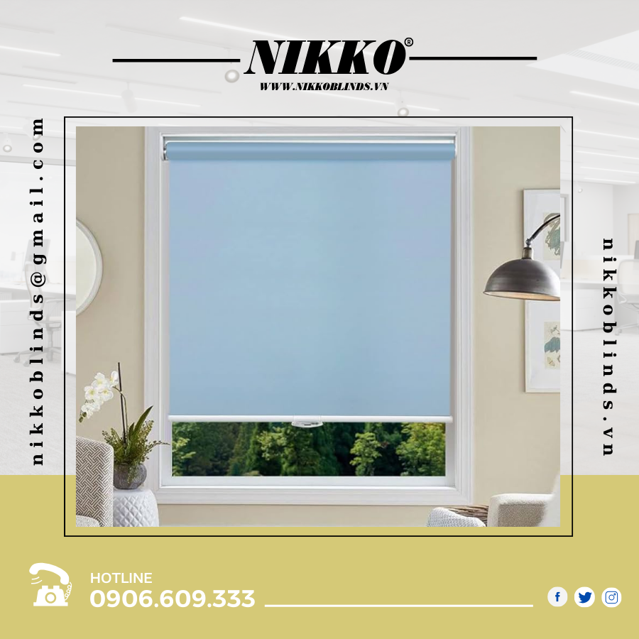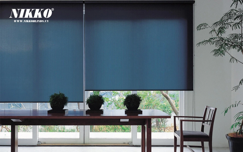 Rèm sáo cuốn trơn màu xanh NIKKOBLINDS có sự đa dạng trong chất liệu vải, thể hiện tốt tính năng "Độ mờ hoạt cảnh", cho phép người sử dụng cảm nhận/nhìn thấy không gian bên ngoài những vẫn đảm bảo được đặc tính cản nhiệt, cản sáng.