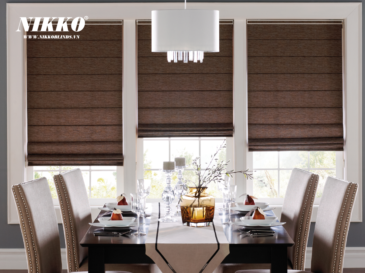Rèm roman NIKKOBLINDS là sản phẩm lấy cảm hứng từ kiểu rèm cuốn và kiểu rèm vải. Các loại chất liệu chủ yếu được sử dụng để làm rèm roman thường là vải gấm bố, cotton, lụa, linen, polyester 100%... Đặc trưng của kiểu rèm roman là 2 lớp vải riêng biệt được may chập vào nhau.