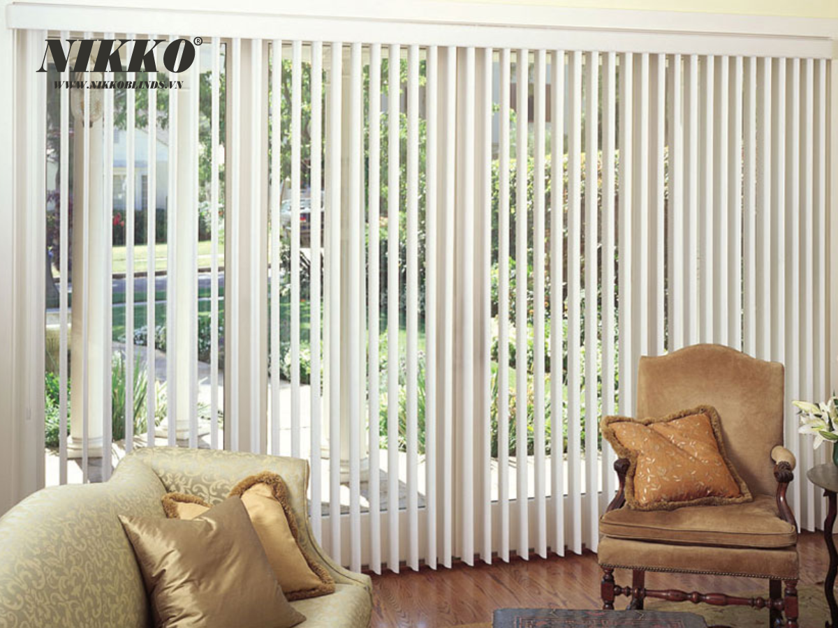 Rèm sáo dọc NIKKOBLINDS được sản xuất từ chất liệu 100% Polyester sợi tổng hợp & PVC vải phủ nhựa hai mặt nên có khả năng chống cách nhiệt rất tốt, độ bền sử dụng cao. Rèm có thể điều chỉnh xoay lật tùy theo ý bạn, có thể kéo lưng ngang hay kéo gọn sang một bên theo ý muốn của bạn. Có hệ thống chuyển động bằng bi treo chạy trên thanh ray nhôm nằm ngang với cửa, có màu sắc và hoa văn phong phú đa dạng.